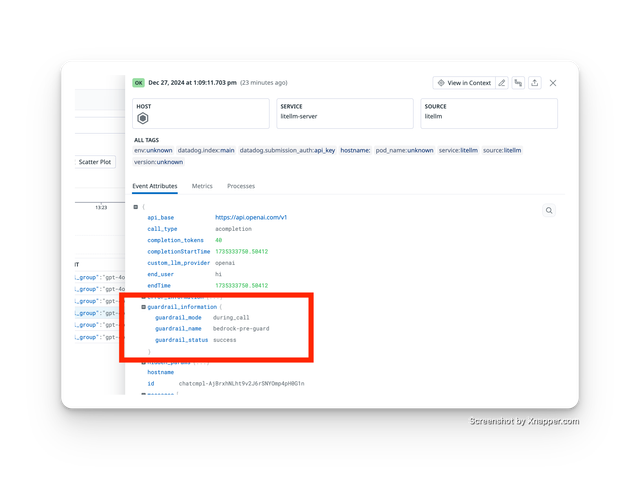 guardrailsparameter - Check your logging provider for the guardrail trace